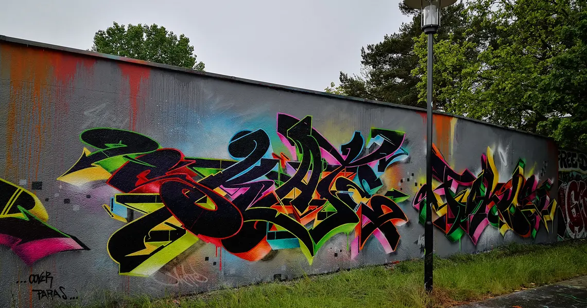 Die „Legal Wall“ am Parkplatz im "Grün für Alle" am Andreas-Güllering-Weg erfreut sich wachsender Beliebtheit. Immer wieder streichen einzelne Sprayer oder ganze Gruppen die Wand vorab einheitlich an, um am nächsten Tag großflächige Kunstwerke entstehen zu lassen. Ziel ist es häufig ein farblich und stilistisch abgestimmtes Gesamtkonzept umzusetzen. Eine Kombination aus Style Writing (stilisierte Buchstaben) und Bildern in verschiedenen Stilrichtungen von Grafformell (eine Mischung von Graffiti und informeller Malerei) bis Comic Style.