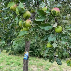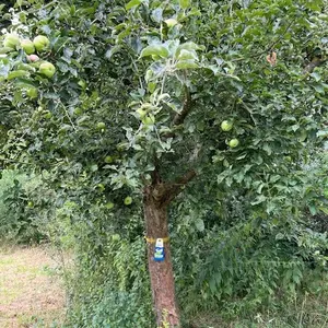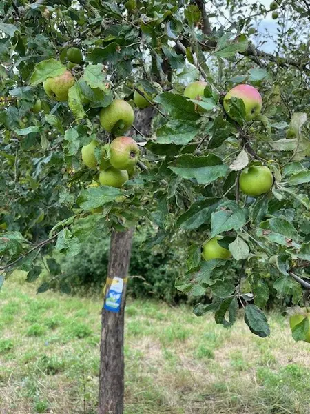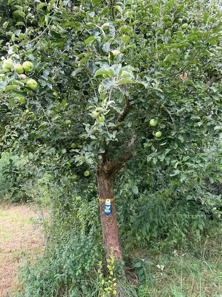 Streuobst ernten in Oberasbach: Die Stadt hat jetzt 16 Obstbäume – v.a. Apfel und Pflaume – in der Alten Langenäcker Straße und am sogenannten Biotop in Rehdorf mit gelben Bändern gekennzeichnet.