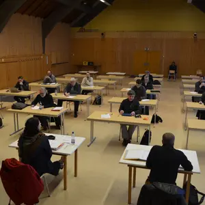 Die Tische der Stadtratsmitglieder waren bewusst in großem Abstand aufgestellt, so dass Personenabstände von zwei Metern jeweils bequem eingehalten wurden. Beim Betreten der Halle kamen bei einigen Erinnerungen an die Abiturprüfungen auf.