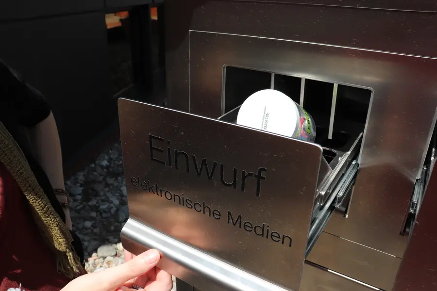 Die große Metallbox hat zwei Einwurf-Fächer: ein großes für Bücher, ein kleineres für DVDs, Hörbücher und Tonies. Die Medien fallen in zwei gefederte Wägen, die am folgenden Werktag vom Bücherei-Personal geleert werden. Anschließend werden die zurückgegebenen Materialien manuell zurückgebucht. Eine extra Benachrichtigung per E-Mail erhalten die Kund:innen dabei nicht. Sie können den aktuellen Buchungsstand jedoch online über ihr Büchereikonto einsehen.