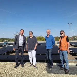 Die zweiteilige Anlage erreicht eine Höchstleistung von 231 kWp, von denen rund 100 kW für den Eigenverbrauch im Sportzentrum eingeplant sind. Die überschüssige Energie wird an das Netz der N-ERGIE abgegeben. Seit Juli 2025 ist die Anlage nun in Betrieb. „Wir bedanken uns bei der Stadt Oberasbach für die kooperative und konstruktive Zusammenarbeit“, so Andreas Roth, Mitglied des EWERG e.G.-Aufsichtsrates und Sprecher der Regionalgruppe Fürth.