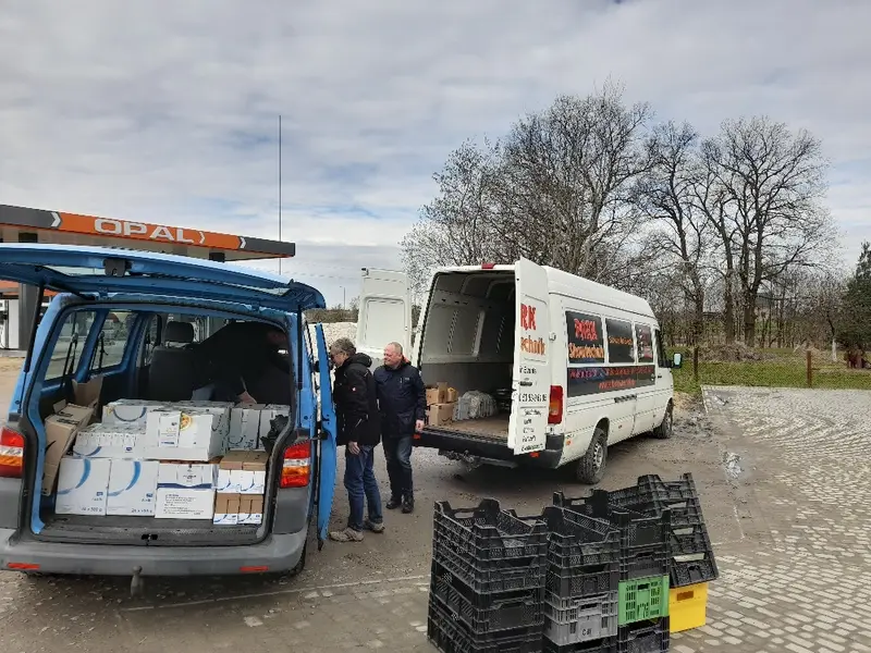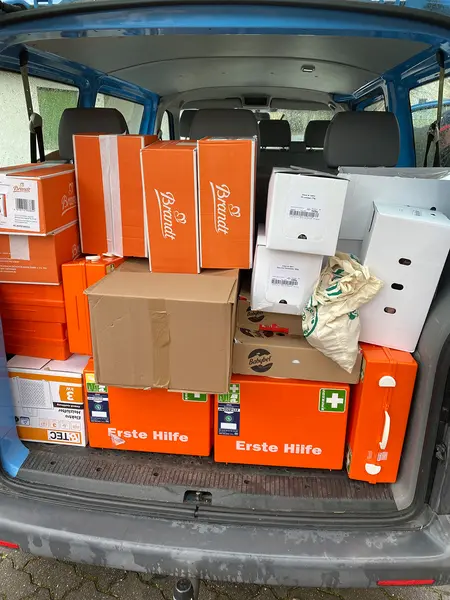 In der DJK-Halle wurden damals Matratzen, Decken, Feldbetten, Schlafsäcke, Verbandsmaterial, Kindernahrung und haltbare Lebensmittel und vieles mehr gesammelt. Innerhalb kurzer Zeit gingen neben den Sachspenden auch Geldspenden in Höhe von rund EUR 36.000 ein. Für EUR 27.000 wurden sogleich Hilfsgüter für die Menschen in Solotschiw in der Nähe von Lemberg beschafft. Solotschiw ist die Partnerstadt unserer Freunde in Olawa. Vor allem eine Schule mit Kindergarten und Wohnheim in der westukrainischen Stadt profitierte von den Hilfsgütern, da die Kinder während der Luftangriffe und -alarme stundenlang in den dunklen Kellern Schutz suchten und Generatoren halfen, für Licht, Strom und Wärme zu sorgen.