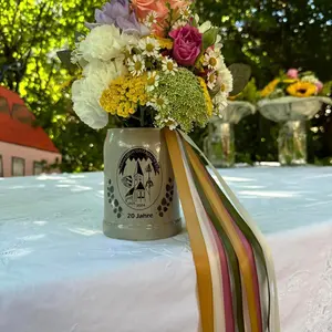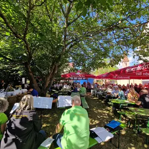 Zur diesjährigen Jubiläumskirchweih des Kärwaboum Oberasbach e.V. im Altort gab es eine Besonderheit: Das bunt geschmückte Erkennungszeichen des Traditionsfestes, das in den letzten zwanzig Jahren an der Bachstraße direkt an der historischen Sandsteinscheune aufgestellt wurde, hat seit dem 13. Juli 2024 einen neuen Standort – der nun erstmals Kirche und Baum in eine gemeinsame Blickachse bringt.