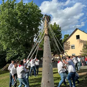 Als der über 23 Meter hohe, weithin sichtbare Nadelbaum am Samstagabend nach der Anfeuerung durch die zahlreichen Schaulustigen schließlich stand, hieß es wieder: „Schaut euch a mol den Baum do a mid seina schena Spitz! Den ham die Aschbacher Burschen gstelld und ham dabei recht gschwitzd.“