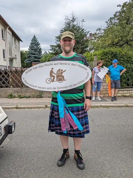 Das Projekt „Radeln ohne Alter“ von Quartiersmanagement und Stadt Oberasbach bietet Senioren kostenlose Ausflugsfahrten mit Wind im Haar. Möglich ist dieser neue Service nur dank der Freiwilligen, die in die Pedale von ERIKA treten. Zu ihnen gehört Sonja Walter: „Man gibt etwas, bekommt aber ganz viel zurück. Unsere Fahrgäste steigen aus und haben sichtlich mehr Lebensfreude.“ Die 44-Jährige ist nicht nur ERIKA-Pilotin der ersten Stunde, sondern koordiniert datenschutzkonform auch die Terminvereinbarungen für die Ausflugsfahrten – hierfür bekommt sie die Anfragen vom Quartiersmanagement weitergeleitet. Eine Sonderstellung im Team nimmt auch Bernd Weber ein: Der Oberasbacher ist bereits seit einigen Jahren bei den United Kiltrunners aktiv. Der Fürther Verein kümmert sich seit 2015 u.a. um Jugend- und Sportförderung und die Unterstützung von Senioren und Gehbehinderten, für die die Frauen und Männer im Schottenrock acht Rikschas zur Verfügung haben.