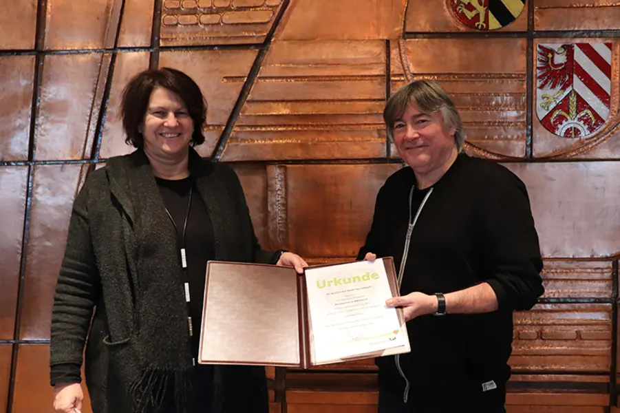 Foto: (c) Stadt Oberasbach Bürgermeisterin Birgit Huber verabschiedet offiziell den langjährigen Büchereileiter Reinhold Münch.