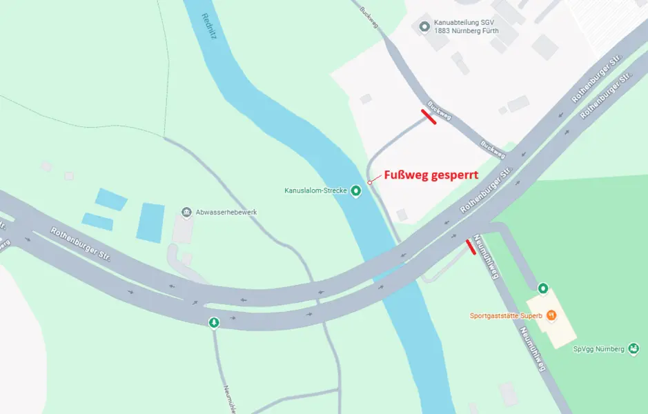 Im Bereich Rothenburger Straße in Oberasbach ist jegliche Benutzung der Rednitz, insbesondere Baden und das Befahren mit Fahrzeugen aller Art, bis auf Weiteres untersagt. Die Maßnahme betrifft den Bereich ab Beginn der Kanuslalomstrecke des Kanuvereins SGV 1883 bis 20 Meter unterhalb der ehemaligen Eisenbahnbrücke. Die Allgemeinverfügung tritt sofort in Kraft und ist bis auf Weiteres gültig.