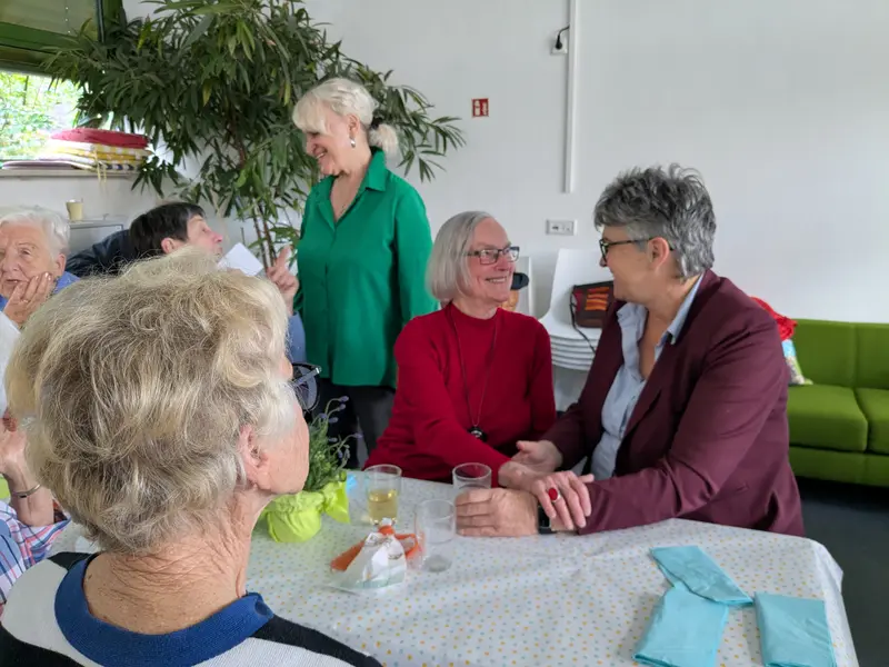 Unter den Gästen waren auch Oberasbachs Erste Bürgermeisterin Birgit Huber und zwei Bewohner der Unterkunft für Geflüchtete im ehemaligen Asbacher Hof. Bei Kaffee und Kuchen sowie selbstgemachten Salaten wurde nach Herzenslust geratscht, gelacht und neue Kontakte geknüpft.