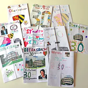 22 Schülerinnen und Schüler der 4b der Grundschule Altenberg haben zum 30. Geburtstag der Stadt Oberasbach aufwändig kreative und liebevolle Präsentationen zum Aufklappen gestaltet.