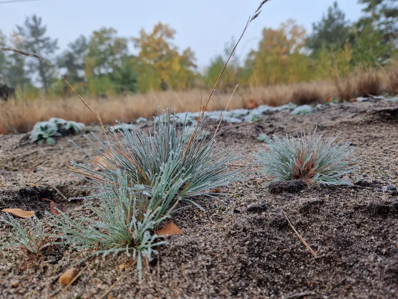 Neben dem Zurückschneiden von Jungbäumen werden auch mit Moosen und Altgras verfilzte Bereiche bearbeitet. So sollen die Flächen wieder in frühe Entwicklungsstadien zurückgeführt werden – eine wichtige Voraussetzung für spezialisierte Pflanzen- und Tierarten. Dazu zählen unter anderem das Berg-Sandglöckchen, Ödlandschrecken, bodennistende Wildbienen sowie verschiedene, teils bundesweit bedeutsame Wespenarten wie die größte Goldwespe Deutschlands.