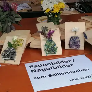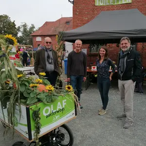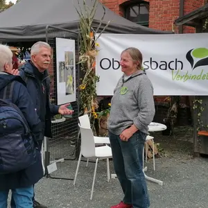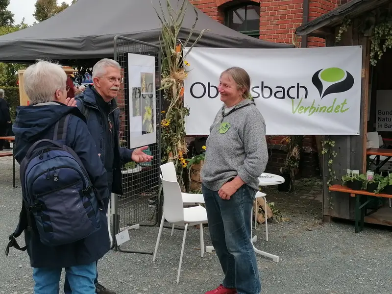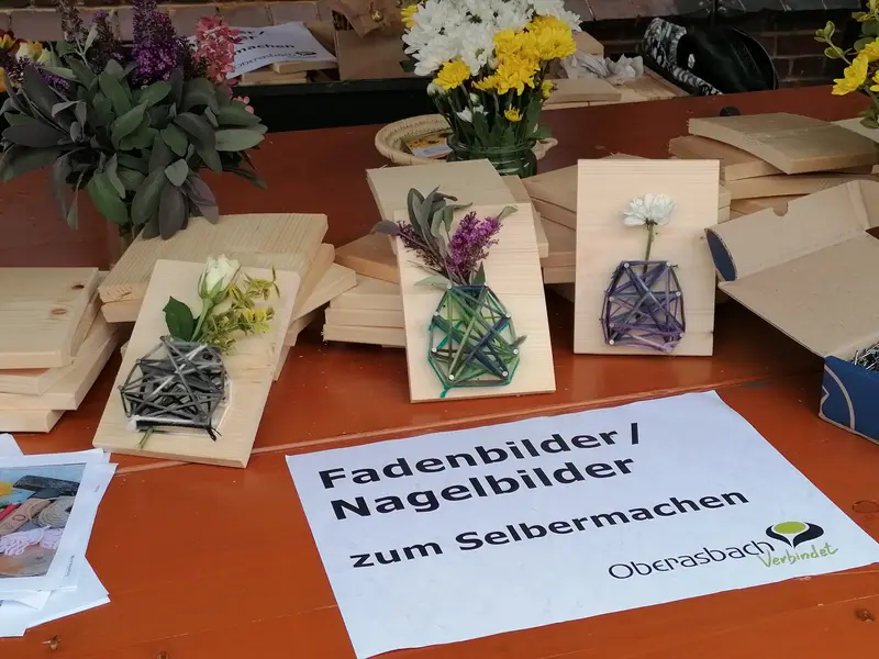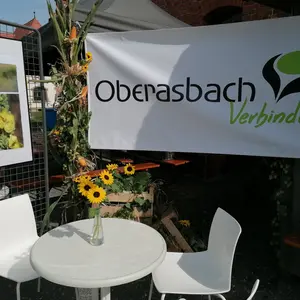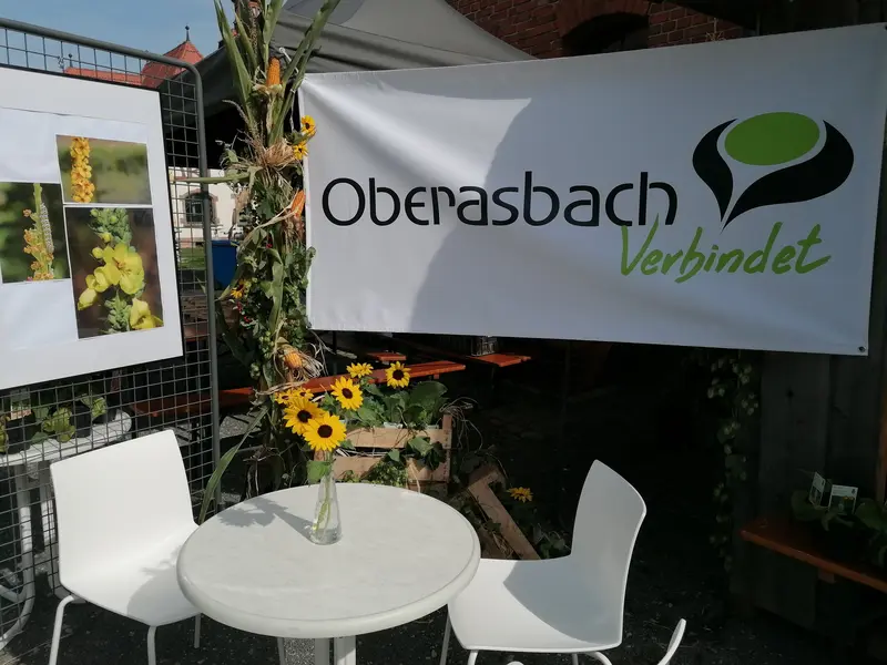 Die Stadt Oberasbach feierte mit und war mit einem Stand vor Ort dabei. Ulla Lippmann vom BUND Naturschutz Oberasbach informierte hier über die gelb blühende, immer häufiger im Stadtgebiet von Oberasbach anzutreffende Königskerze. Der TSV Altenberg lud mit einer Torwand zum Kicken ein und mit dem Kulturamt konnten die zahlreichen Besucherinnen und Besucher hübsche Nagelbilder selbst gestalten und als Erinnerung mit nach Hause nehmen. Renate Schwarz vom Quartiersmanagement Oberasbach der Diakonie Fürth hatte die Aktivierungskisten für Menschen mit Demenz zum Stand der Seniorenvertretungen mitgebracht, die im Treffpunkt Alte Post kostenlos geliehen werden können. Außerdem konnte man das neue Oberasbacher Lastenfahrrad, kurz OLAF genannt, erstmals bestaunen.