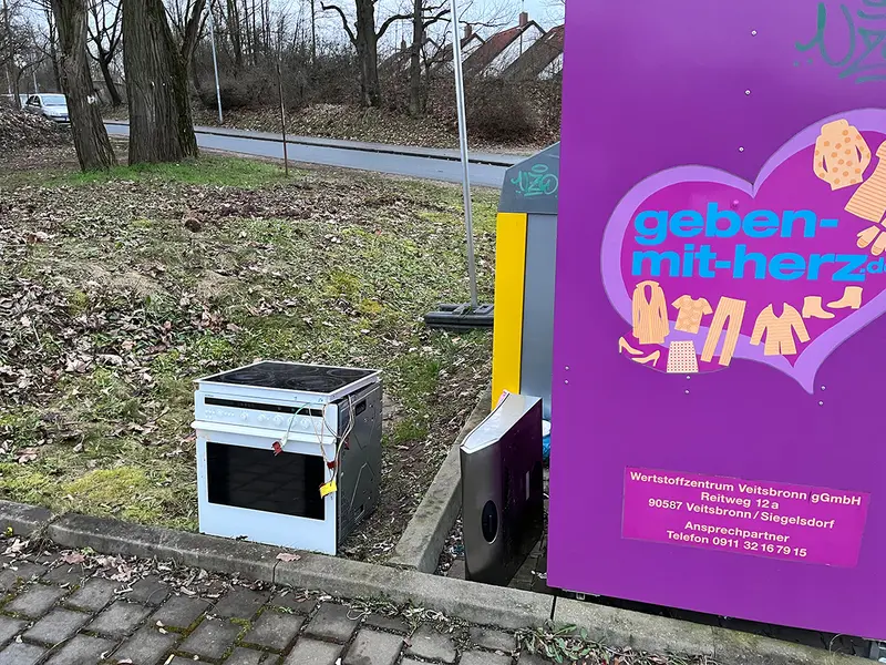 Insbesondere an Altglas-Containern und Altkleidersammelbehältern kommt es immer wieder zu abenteuerlichen Funden. Achtlos abgestellte Kisten mit Restmüll, ausrangierte Elektroherde oder Keramikgegenstände sind keine Seltenheit.