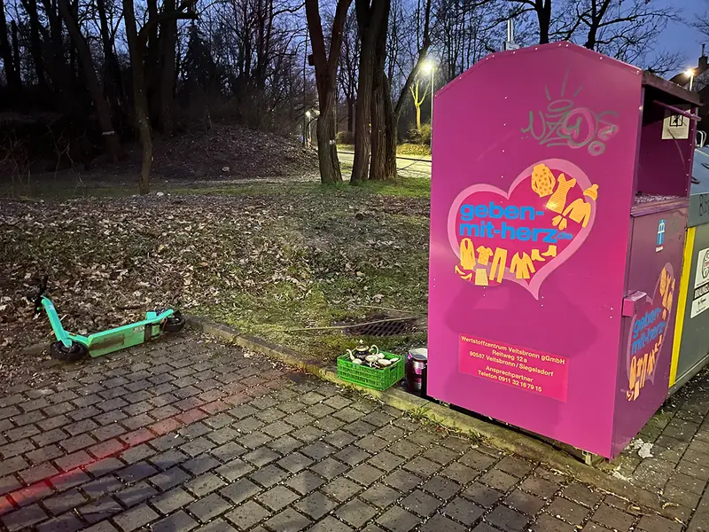 Den Aufwand, den die Mitarbeitenden des städtischen Bauhofs außerhalb ihrer eigentlichen Aufgaben dafür aufbringen müssen, ist nicht zu unterschätzen. Insbesondere werden auch gerne Glasflaschen oder andere Gegenstände aus Glas an den Containern abgestellt, wenn sie nicht mehr hineinpassen. Das mag auf den ersten Blick eine scheinbar vertretbare Lösung sein, weil ja der Entsorger diese Flaschen dann ebenfalls mitnehmen könnte, aber in der Regel kommt es beim Anheben des Containers zu Beschädigungen an den Flaschen und die Glasscherben liegen teilweise weit verstreut im Umfeld der Container auf dem Pflaster oder in den angrenzenden Grünstreifen.