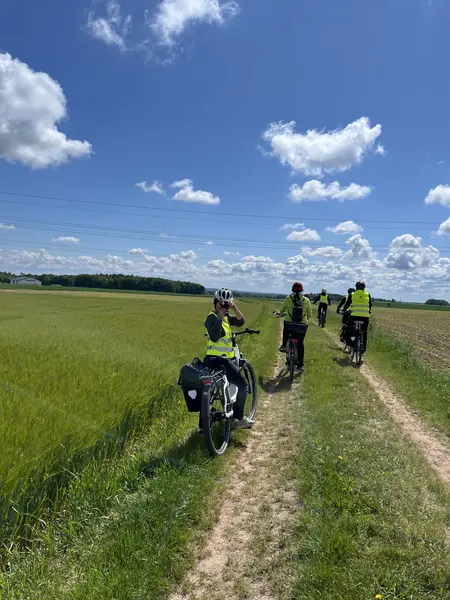 Pünktlich um 10.30 Uhr startete die Gruppe am Oberasbacher Rathaus. Der erste Teil der Strecke führte die Radelnden durch Oberasbach, Loch und Gutzberg. Von dort aus ging es weiter auf idyllischen Feld- und Wiesenwege, entlang der Rednitz in Richtung des Freiland-Aquariums und -Terrariums. Die abwechslungsreiche Strecke sorgte immer wieder für kleine Überraschungen und bot viel Raum für Gespräche und den Austausch unter den Teilnehmenden sowie das gemeinsame Erleben und Entdecken neuer Wege in der Umgebung.