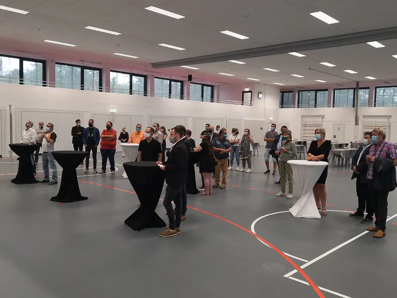 Bürgermeisterin Birgit Huber bedankte sich bei allen an dieser Baumaßnahme Beteiligten, insbesondere dem ausführenden Architekturbüro Lemke und seinen Mitarbeitern, die die Baustelle am „Laufen“ gehalten haben, und dem Ingenieurbüro Leber & Seibold, die die Halle auf den neuesten Stand der Technik gebracht haben sowie allen anderen beteiligten Technikern, Handwerkern und Bauunternehmen, die, wie Huber sagte, „stolz auf das trotz Corona-Einschränkungen Geschaffene sein können.“