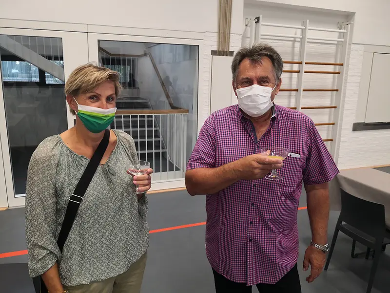 Mit dem symbolischen Durchschneiden eines roten Bandes am Eingang zum Foyer lud Birgit Huber die Gäste ein, die Halle (unter Einhaltung der Corona-Hygienevorschriften) persönlich in Augenschein zu nehmen.