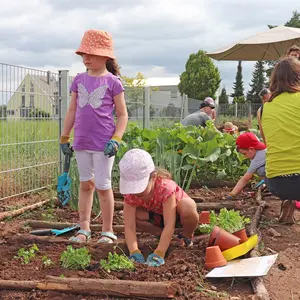 Kindergarten Regenbogen ackert im eigenen Gemüsegarten