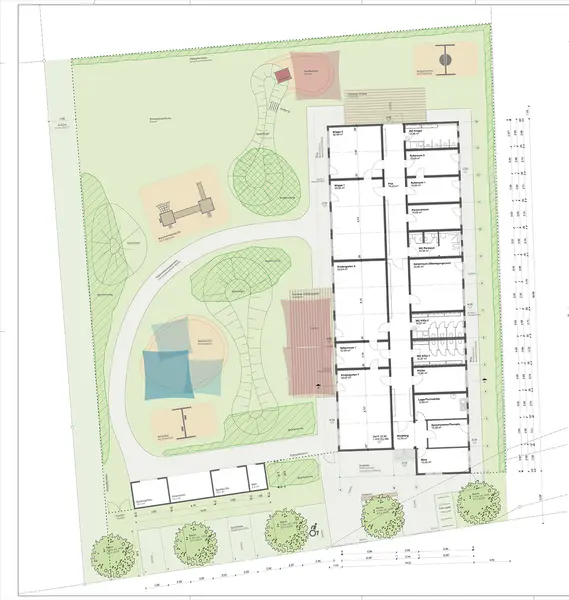 Die Fertigstellung ist derzeit für Mitte August vorgesehen, so dass ab September dann die Kinder auf 482 m² Innenfläche in zwei großen Kindergartenräumen und einem großen und einem kleineren Krippenraum sowie Wirtschafts- und Nebenräumen betreut werden.