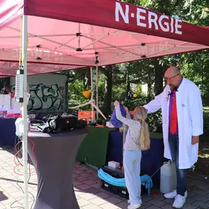 Zum breit gefächerten Programm gehörten auch über zehn Infostände: Zum Thema Energie waren C.A.R.M.E.N. e.V. und AE Studio aus Nürnberg Ansprechpartner rund um Energieeffizienz, energetische Sanierung, PV-Anlagen und Batteriespeicher. Die Rangauwerke waren mit einem Elektroauto vertreten. Praktische Tipps zur Senkung des Energieverbrauchs im Alltag gab der Stromspar-Check der kirchlichen Beschäftigungsinitiative Fürth. Die Stadt Oberasbach unterstützt einkommensschwächere Haushalte, indem zehn von ihnen am Stromspar-Check teilnehmen können. Weitere Infos dazu in Kürze hier auf www.oberasbach.de.