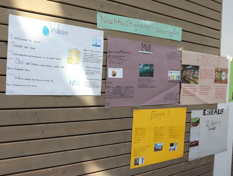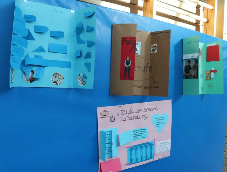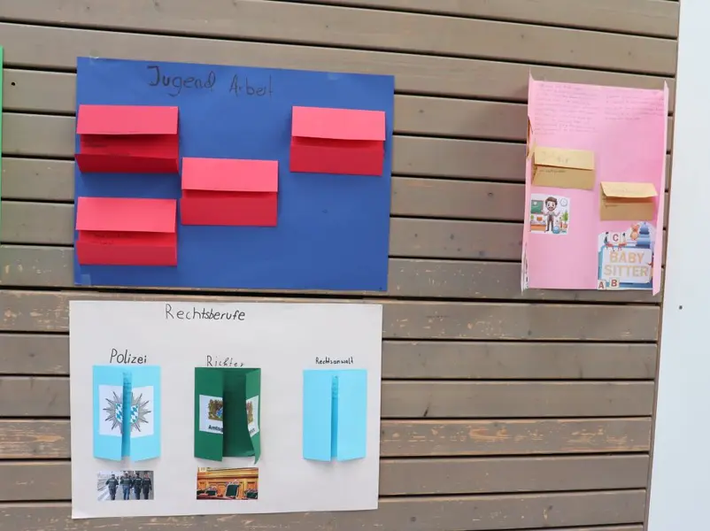 An den Wänden hingen Plakate mit den Ergebnissen der 9. Klassen. Diese hatten sich intensiv mit der Frage „Welche Berufe braucht man für ein demokratisches Zusammenleben?“ beschäftigt. David Budai, der frisch gewählte Stadt- und Landkreisschülersprecher, berichtete ergänzend von den Besuchen im Hauptwerk von Faber-Castell und im Bauhof der Stadt Oberasbach.