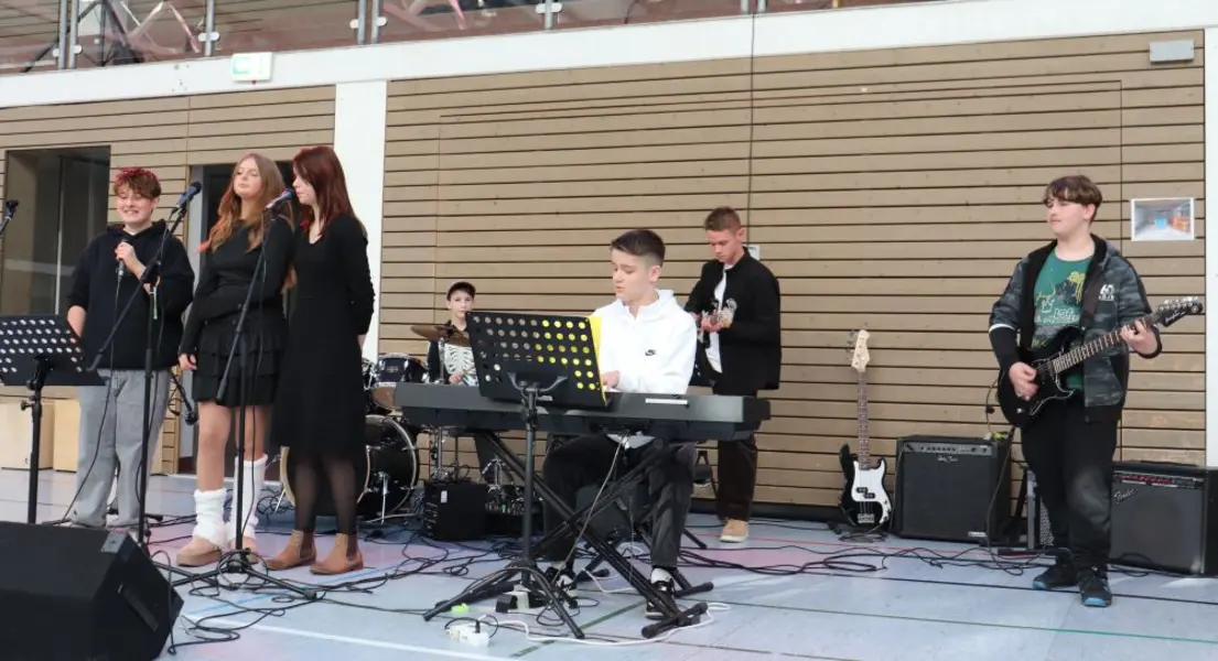 Musikalisch eröffnete die 6b das Frühstück mit „Einfach machen“ und der bedeutungsvollen Liedzeile „Du kannst dir alles einfach machen odеr du kannst es einfach machen“. Die 5b legte mit „Zusammen“ möglicherweise die Grundsteine für spätere Karrieren als Hip Hopper. Den Abschluss bildete die Schulband mit „Bring Me to Life“ und „A Thousand Miles“. Alle Musikprojekte sind Teil von „Klasse-im-Puls“, dem musizierenden Klassenzimmer, das unter anderem von der Stadt Oberasbach un“terstützt wird. Nach vier erfolgreichen Jahren darf sich die Pestalozzi-Mittelschule nun „Klasse-im-Puls-Schule nennen.
