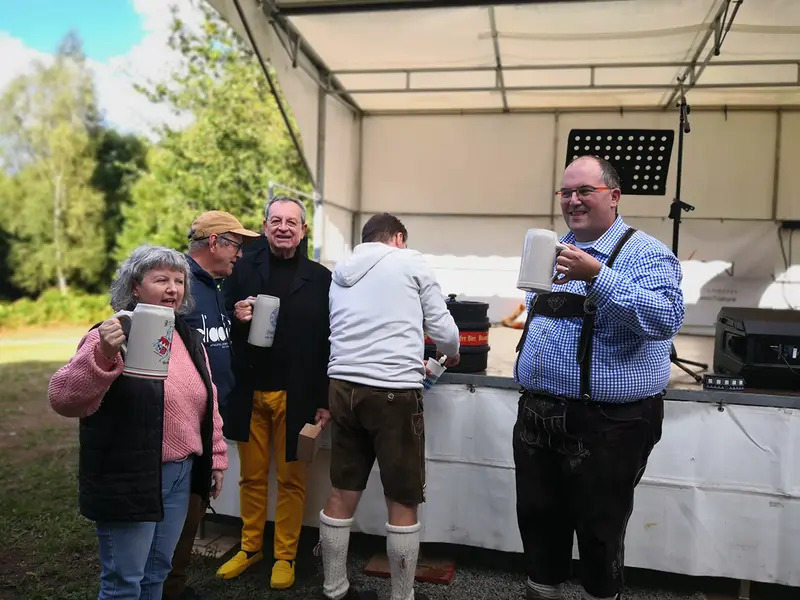 Auch in diesem Jahr machten sich Mitte September 18 Mitglieder des Kulturvereins auf die 1000 km-Reise in die Partnergemeinden bei Limoges und hatten wieder mehrere Hektoliter fränkisches Fass- und Flaschenbier, Hunderte heimische Brodwörschd sowie zig Kilo Obatzda, Brezn, Weggla, Kartoffelsalat und Sauerkraut im Gepäck. In jedem Jahr fand das Bierfest mehr Zulauf und die fränkischen Spezialitäten wurden ein wahrer Besuchermagnet.