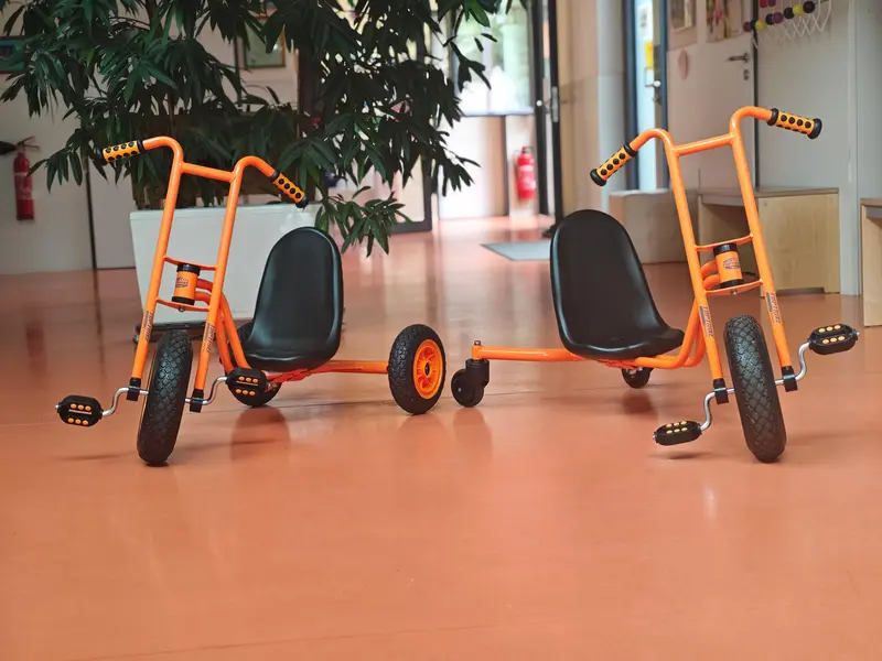 Dank einer großzügigen Spende von Frau Bothen aus Oberasbach stehen den Schülerinnen und Schülern nun mehrere nagelneue orangefarbene und vor allem hochwertige Fahrzeuge zur Verfügung. Die ersten Wettrennen auf dem Schulhof haben die „Boliden“ bereits hinter sich.
