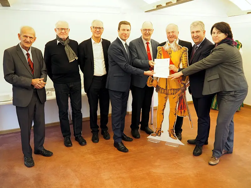 Am Kulturhaus ist der südliche Einstieg in den Erlebnisweg. Geplant ist hier eine Informationsstele zum Thema Kleidung und Ausrüstung. So erläuterte Katrin Weber, Leiterin der Trachtenforschungs- und -beratungsstelle, anhand einer lebensgroßen Pappfigur die Besonderheiten der Kleidung. An 26 weiteren Stellen soll die Dimension des Lagers deutlich werden. Mit dem Ziel einen historischen Bezug herzustellen. So zum Beispiel in Oberasbach. Denn wo heute das Rathaus steht, war einst der Munitionsplatz. Und an der Alten Veste in Zirndorf standen sich die Truppen von Wallenstein und Gustav Adolf in einer Schlacht gegenüber. Bei einem so großen Projekt waren im Vorfeld viele Gespräche nötig. "Wir hatten gemeinsame Stadtratssitzungen, die für sich schon bemerkenswert waren und überdies die letzten Zweifler überzeugt hat", bemerkte Zirndorfs Erster Bürgermeister Thomas Zwingel.