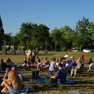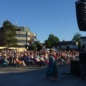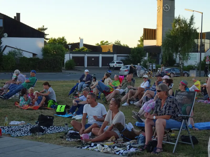 Bereits um 18 Uhr füllten sich die Stuhlreihen vor der Bühne. Aus allen Richtungen kamen Konzertbesucher mit Klappstühlen, Decken und Kühltaschen und suchten sich ein Plätzchen auf dem Rathausplatz oder auf der angrenzenden Wiese.