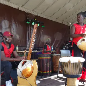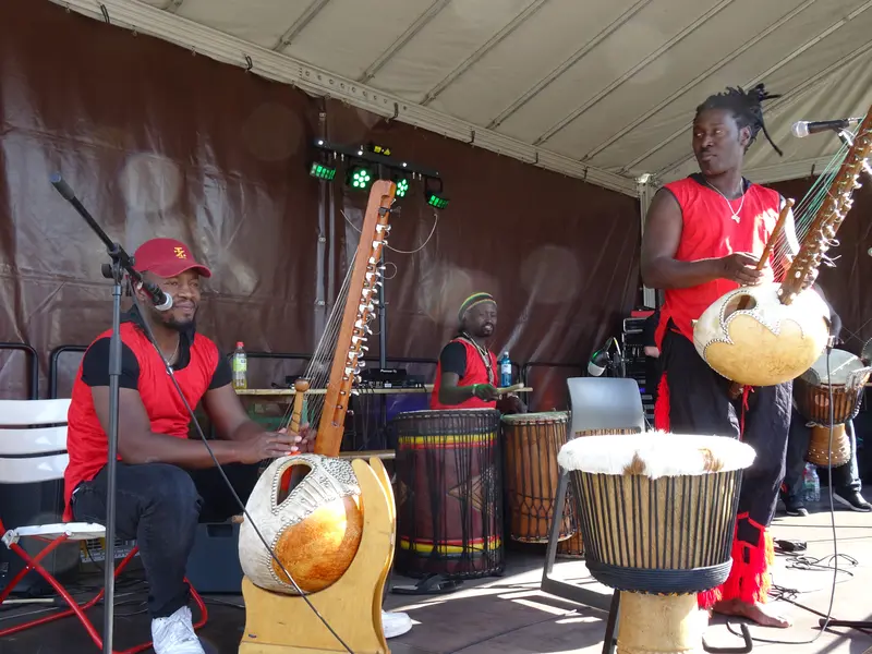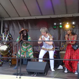 Das Bühnenprogramm war so abwechslungsreich wie der afrikanische Kontinent. Die Trommler und Kora-Spieler (westafrikanische Stegharfe) der Gruppe Domou Afrika (wolof: die „Kinder Afrikas“) sind wahre Meister auf ihren Instrumenten. Gemeinsam eroberten sie die Herzen der Zuschauer mit ihren einzigartigen Auftritten. Ein Leben ohne Musik und Tanz ist für sie unvorstellbar, denn Musizieren bedeutet Lebensfreude.