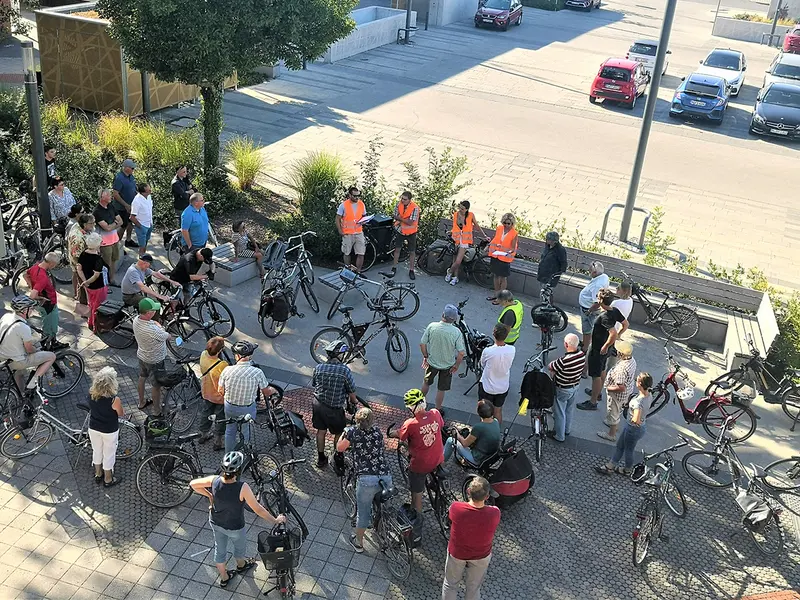 Nun folgte am 8. August ein neues Format der Bürgerbeteiligung: ein „mobiles Bürgergespräch“ in Form der ISEK-Radtour zu den Entwicklungsschwerpunkten im Stadtgebiet. Die Erste Bürgermeisterin, Mitglieder des Stadtrates und die Fachplaner der beteiligten Planungsbüros standen während der rund dreistündigen Tour jederzeit für Fragen, Anregungen und Meinungen zur Verfügung. Rund 40 Bürgerinnen und Bürger traten in die Pedale.