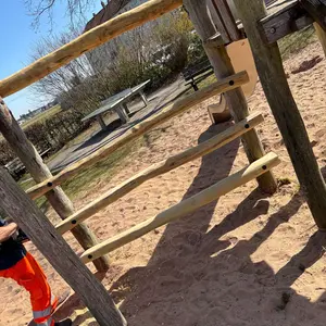 Die Oberasbacher Akazien sollen möglichst oft zu derartigen neuen Ehren kommen. Auch den gerade am nördlichen Rathauseingang angebrachten Rahmen für Jahreszeitenschmuck und die Einfassungen der Liegemöbel auf der Streuobstwiese am Andreas-Güllering-Weg hat der Bauhof bereits aus heimischer Akazie gefertigt. Zum Vergleich: Die armdicken Rundhölzer aus Robinie für die 2024 installierte neue Leiter am Regenbogenspielplatz schlugen mit über 2.000 Euro zu Buche. Die bislang sehr hellen Rundhölzer vergrauen mit der Zeit, denn sie sollen unbehandelt bleiben. Auf diese Weise können sie bei Bedarf problemlos zerkleinert und dank Hackschnitzelheizung zum Heizen von Bauhof und den Nachbarn Freiwillige Feuerwehr Oberasbach und Kindergarten Wilhelm Löhe verwendet werden. Hier wird also die Komplettverwertung eines Rohstoffs angestrebt. Bei bunt gestrichenem oder lasiertem Holz entstünden im Gegensatz dazu hohe Entsorgungskosten.