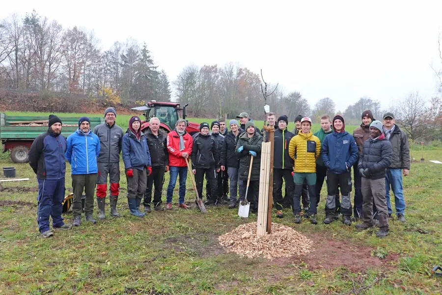 36 Obstbäume wurden am 29. November am Hans-Reif-Zentrum in Oberasbach gepflanzt. Die Maßnahme organisierte der Landschaftspflegeverband Mittelfranken (LPV) in Zusammenarbeit mit dem Tiefbauamt der Stadt. Das Besondere daran: 14 Schülerinnen und Schüler der Fachrichtung Agrarwirtschaft des Fürther Berufsschulzentrums (BSZ) pflanzten die Bäume als Ausbildungsmaßnahme im Rahmen eines Praxistages.