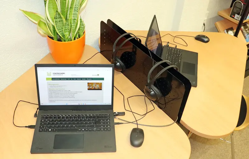 So konnten – neben einem Beamer für Veranstaltungen – zwei neue, leistungsstarke Besucherlaptops angeschafft werden. Die Abteilung IT entschied sich gemeinsam mit der Stadtbücherei-Leitung für transportable Notebooks anstelle fest installierter PCs. „Auf diese Weise sind wir wesentlich flexibler und können die Geräte auch beispielsweise für die Arbeit mit Schulklassen einsetzen. Für Büchereibesucher ist die Nutzung allerdings nur an den dafür eingerichteten Tischen vorgesehen", erklärt Stadtbücherei-Leiterin Edith Backer.
