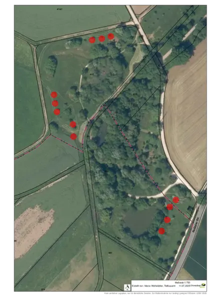 Streuobst für alle: Letzten Sommer hat die Stadt 16 Obstbäume – v.a. Apfel und Pflaume – in der Alten Langenäcker Straße und am Biotop in Rehdorf zum Selberernten freigegeben. Jetzt wurde die Aktion Gelbes Band ausgeweitet, in Rehdorf kamen vier Bäume hinzu.