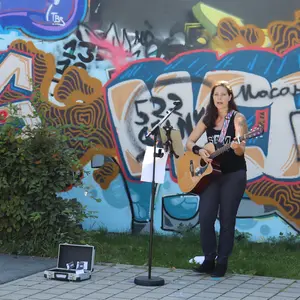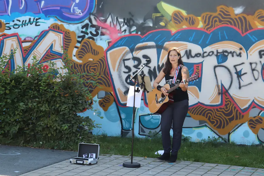 Auf halber Strecke sind bunte Graffitis auf der Legal-Wall hinter dem Jugendhaus OASIS zu bewundern. Hier können Graffiti-Künstler ganz legal sprayen und lassen regelmäßig neue großformatige Bilder entstehen.