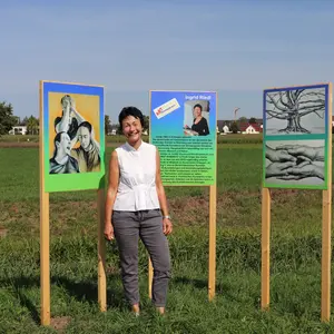 An insgesamt 14 Stationen findet man auf Hohlkammerplakaten gedruckte Bilder und erfährt gleichzeitig etwas über die Mitglieder der Künstlergruppe ART Oberasbach.