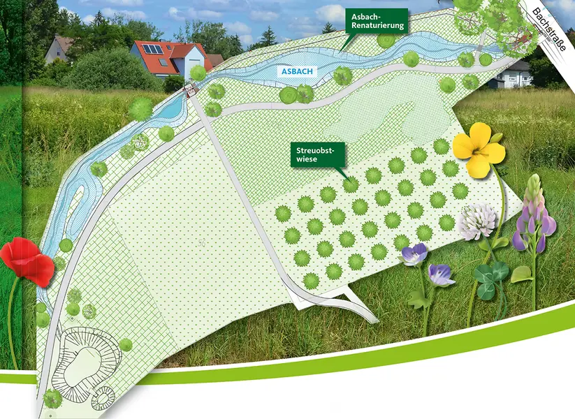 Der Asbach, ein kleiner Bachlauf, der westlich von Anwanden entspringt und südlich der Rothenburger Straße in die Rednitz fließt, wurde im vorigen Jahrhundert im Bereich unseres Stadtgebietes stark begradigt. Stück für Stück soll er renaturiert werden: So wurden u.a. die Sattlerwiese, die Kreutleser Wiesen zwischen Gängle und Häsigweg, das sogenannte Biotop in Rehdorf und die Asbachrenaturierung in Rehdorf angelegt. In diesen Bereichen konnte sich der Asbach wieder ein eigenes, leicht geschwungenes Bachbett schaffen. In den Lohbauerwiesen entstand auf dem Grundstück der Stiftung zudem Ende 2021 eine Streuobstwiese, für deren Unterhalt die Stiftung auch für die Folgejahre die Kosten übernimmt.