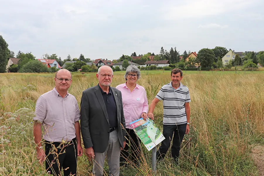 Im Juli fand nun eine Begehung des Asbachgrundes statt, bei der u.a. eine von der Stiftung beauftragte Studie des Instituts für Vegetationskunde und Landschaftsökologie über den Erfolg der bisherigen Bemühungen vorgestellt wurde. Die Biologen haben eine flächendeckende Kartierung der Lebensraumtypen im Asbachgrund vorgenommen, dabei lag der Fokus auf den wichtigsten Pflanzengesellschaften wie Röhrichte, Hochstaudenfluren, artenreichen Wiesen, Gebüschen und Bäumen. Außerdem wurde besondere Tierarten betrachtet. „Allein 20 verschiedene Libellen-Arten wurden kartiert, sowie 14 Heuschrecken-Arten. Auch wurde das Vorkommen zahlreicher Vogelarten wie Grünspecht, Sperling, Pirol, Rebhuhn, Stieglitz, Sumpfrohrsänger, Neuntöter und Eisvogel, zahlreicher Tagfalter wie beispielsweise der Ameisenbläuling oder Amphibien wie die Erdkröte und der Grasfrosch festgestellt“, freut sich Prof. Gerd Aufmkolk vom Stiftungsvorstand. Der Biber als exzellenter Wasserbaumeister schaffe in hohem Maße neue Lebensräume. Die Stadt Oberasbach begleitet sein Vorkommen mit Maßnahmen zum Schutz der landwirtschaftlich genutzten Flächen und der Bäume.