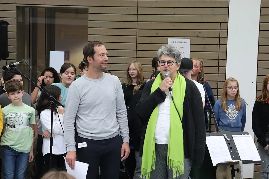 Die Schulband und der Chor unter der Leitung von Elisabeth Zippelius sorgten für beste Stimmung. Vertreter der Bürgerstiftung, des Elternbeirates, des Fördervereins, der Schulcoaches und der Stadt Oberasbach freuten sich über die Einladung. Der stellvertretende Schulleiter Jens Gütlein wertete deren Besuch auch als Zeichen der Wertschätzung für die Pestalozzi-Mittelschule. Bürgermeisterin Birgit Huber dankte den Schülerinnen und Schülern für ihren Einsatz. Auch sie unterstrich die Bedeutung für den Zusammenhalt in dieser Schule und wünschte allen schöne Herbstferien.