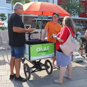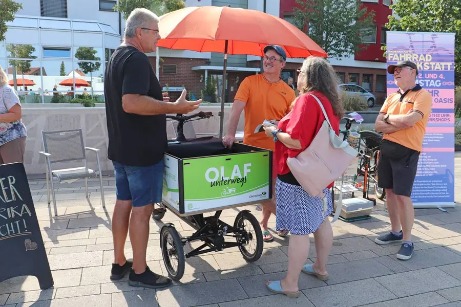 Neben der Cargobike Roadshow waren der Fahrradanbieter e-motion sowie der Fahrradladen JUIZZ aus Nürnberg vor Ort, die ebenfalls verschiedene Modelle zum Testen anboten. Zusätzlich konnte unter Anleitung von Thomas Kaiser (Fahrradwerkstatt Radl Kaiser), das Oberasbacher Lastenrad OLAF getestet werden, das bei vielen für Begeisterung sorgte. Am Stand des ADFC Oberasbach konnte man sich zum Thema Radverkehr austauschen und an einem Quiz teilnehmen. Die Stadt Oberasbach und der Landkreis Fürth waren mit Informationen zur Radverkehrsförderung vertreten.