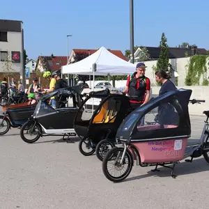 Am 10. September 2023 fand auf dem Oberasbacher Rathausplatz im Auftrag der Arbeitsgemeinschaft fahrradfreundliche Kommunen in Bayern e.V. (AGFK) die Cargobike Roadshow (CBRS) statt. Die Veranstaltung bot nicht nur die Gelegenheit, die Vielfalt an Lastenrädern kennenzulernen, sondern auch ein abwechslungsreiches Rahmenprogramm für Groß und Klein.