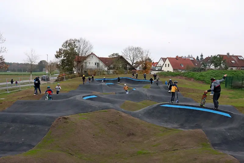 - Der Pumptrack ist eine Sportanlage für Kinder ab acht Jahren, Jugendliche und Erwachsene, kein Kinderspielplatz.
