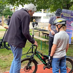 Die Stadt Oberasbach ist auf dem Weg, fahrradfreundliche Kommune zu werden. Dabei spielt die Verkehrssicherheit eine große Rolle – gerade Kinder sollten auf etwaige Risiko-Situationen beim Radfahren vorbereitet werden und sich eine größtmögliche Stabilität auf dem Sattel aneignen. So mussten die an diesem Samstag teilnehmenden Kinder zum Beispiel einen schmalen und kurvigen Parcours absolvieren, ohne die Klötze am Rand umzustoßen, und ein Handzeichen anzeigen sowie einen Schulterblick machen, bei dem sie sich zugleich eine Zahl merken mussten. Außerdem galt es einen Hütchen-Slalom abzufahren und am Ende eine scharfe Bremsung durchzuführen. Die 38 teilnehmenden Kinder hatten jede Menge Spaß und machten schnell Fortschritte.