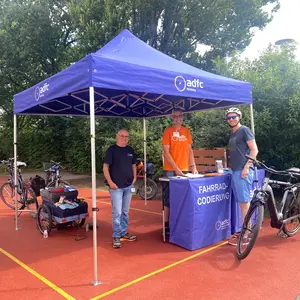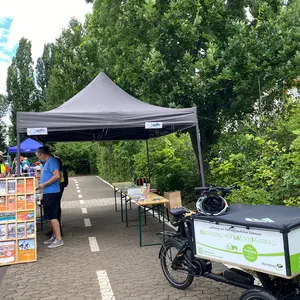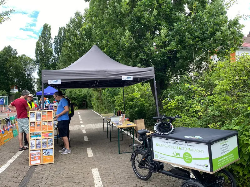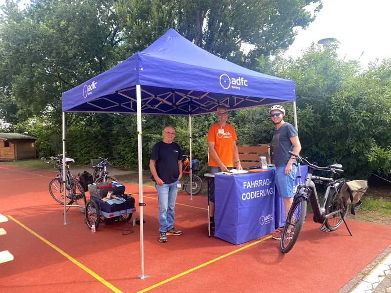 Zusätzlich zu dem Training informierte der ADFC wartende Eltern über die Radverkehrsförderung in der Stadt Oberasbach. Wer Lust dazu hatte, konnte auch eine Proberunde mit dem kostenlos ausleihbaren Oberasbacher Lastenfahrrad OLAF drehen. Der ADFC Nürnberg bot parallel die Möglichkeit zur Fahrradcodierung an, die sehr gut angenommen wurde.