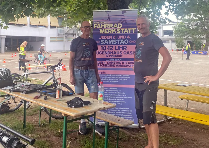 Die Verkehrswacht Fürth hat das Training gemeinsam mit zwei Fahrtrainern der ADFC-Ortsgruppe durchgeführt. Die Oberasbacher Fahrrad-Nachbarschaftswerkstatt überprüfte auf Wunsch die Räder der teilnehmenden Kinder auf technische Sicherheit und reparierte kleinere Mängel. Auch die BRK-Ortsbereitschaft unterstützte die Veranstaltung ehrenamtlich.