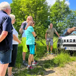 Hier wartete bereits der Biberberater des Landkreises Fürth Stephan Scharf mit seinem pelzigen Assistenten, einem ausgestopften Biber – der einem Verkehrsunfall zum Opfer gefallen war. Groß und Klein bekamen bei dem Vortrag einen Einblick in das Leben der Biber und Infos zur Biberfamilie, die sich aktuell nahe des „Biotops“ Rehdorf niedergelassen hat.