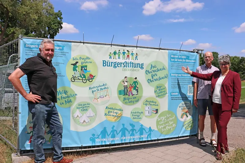 Deutlich sichtbar wird das umfangreiche Engagement der unabhängigen Bürgerstiftung Oberasbach auf den neuen Großflächen-Transparenten (u.a. am DJK-Sportplatz) und dem neu gestalteten Flyer. Damit wirbt die Bürgerstiftung um weitere Spenden, damit auch zukünftig zahlreiche Projekte gefördert werden können. Gerade in Zeiten leerer Stadtkassen wird die Arbeit der Bürgerstiftung noch wichtiger, um die Fortführung sozialen Engagements sicherzustellen.