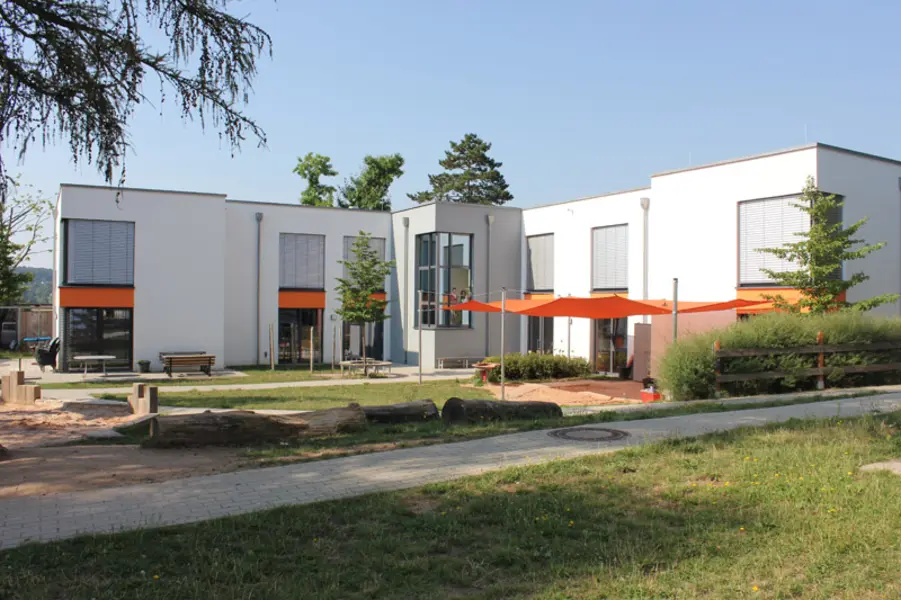 Hier werden derzeit bis zu 76 Kinder in jeweils zwei Krippen- und Kindergartengruppen ganztägig betreut (Bildung, Erziehung und Betreuung von Kindern ab 10 Monaten bis zum Schuleintritt).