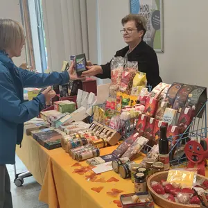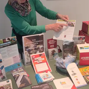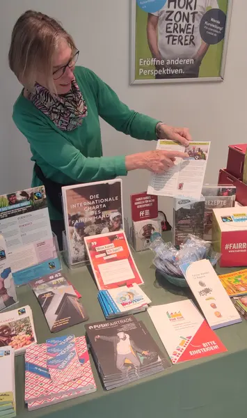 Der Aktionskreis Fair Trade und der „Eine Welt Laden“ Oberasbach waren ebenfalls im Café vertreten und warteten mit Infomaterial und fair gehandelten Waren auf die Besucher:innen.